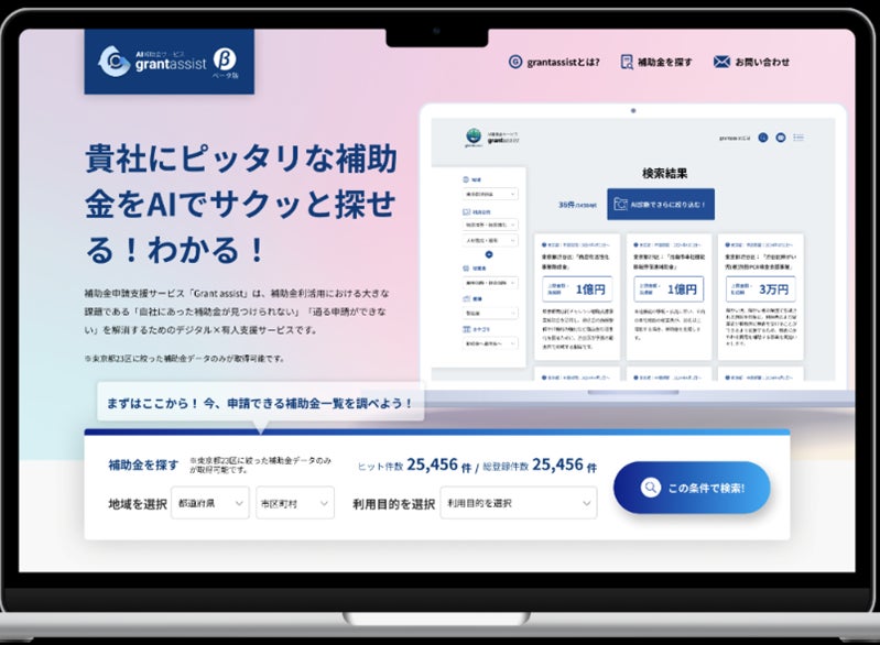 「AIを活用した補助金活用支援サービス「grantassist(グラントアシスト) 」β版の無償トライアル企業および企業支援機関10社を募集」